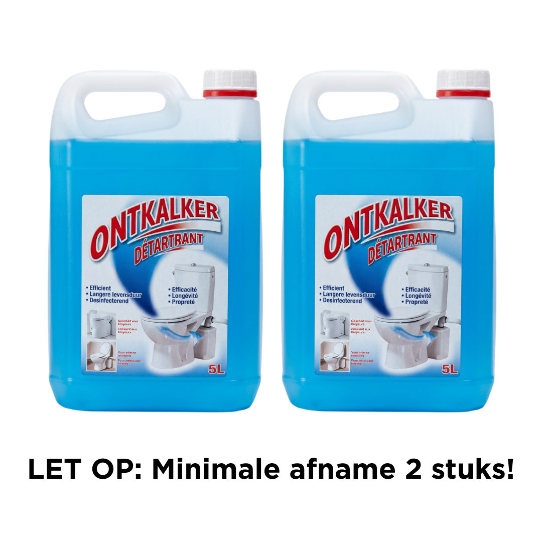 Speciaal Ontkalker Broyeurtoilet is speciaal ontwikkeld voor het onderhouden, reinigen en ontkalken van je broyeurtoestel van Broyeurwereld. De geconcentreerde formule tast de motor- en kunststof onderdelen van het toestel niet aan en zorgt voor een gedegen onderhoud. Door 3-4 keer per jaar te ontkalken, afhankelijk van de waterhardheid, heb je jarenlang extra genot van je Broyeurtoilet, vuilwaterpomp of fecaliënvermaler.